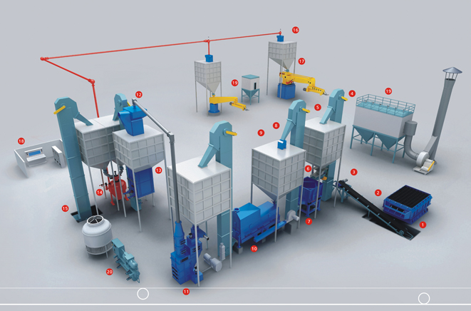 自硬砂落砂、砂處理及混砂造型生產(chǎn)線(xiàn)示意圖