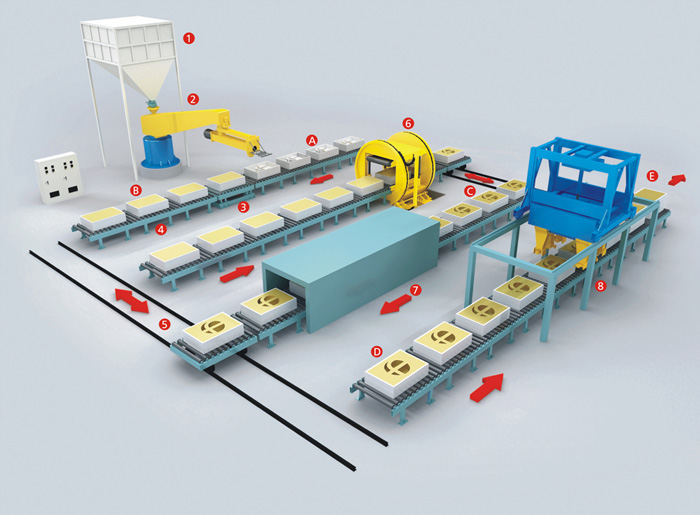 自硬砂自動(dòng)造型生產(chǎn)線示意圖
